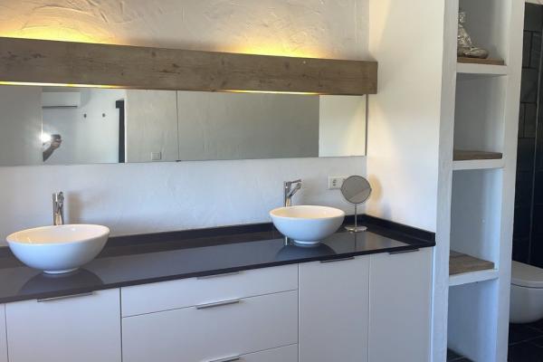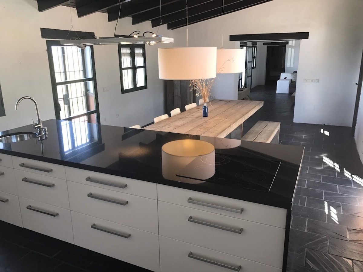 You’ll find a modern yet warm decor with all comforts. The villa has been totally renovated to the highest standard, which makes it even better than most new built villas. All on one level there's a spacious lounge area directly connected to the extended top quality kitchen, with separate utility room. There're 3 large bedrooms, 2 bathrooms and a third separate toilet. The master bedroom has a large ensuite bathroom and is situated on the left side of the villa. The other 2 bedooms are situated on the right side of the villa, which creates maximum privacy. These 2 bedrooms can also be accessed directly from the outside and share a spacious bathroom with shower. The many large double glazed windows makes the property very light and bright. There's another large room under the roof, accessed by an outside staircase, which can be converted into a guest room with shower and small kitchenette.